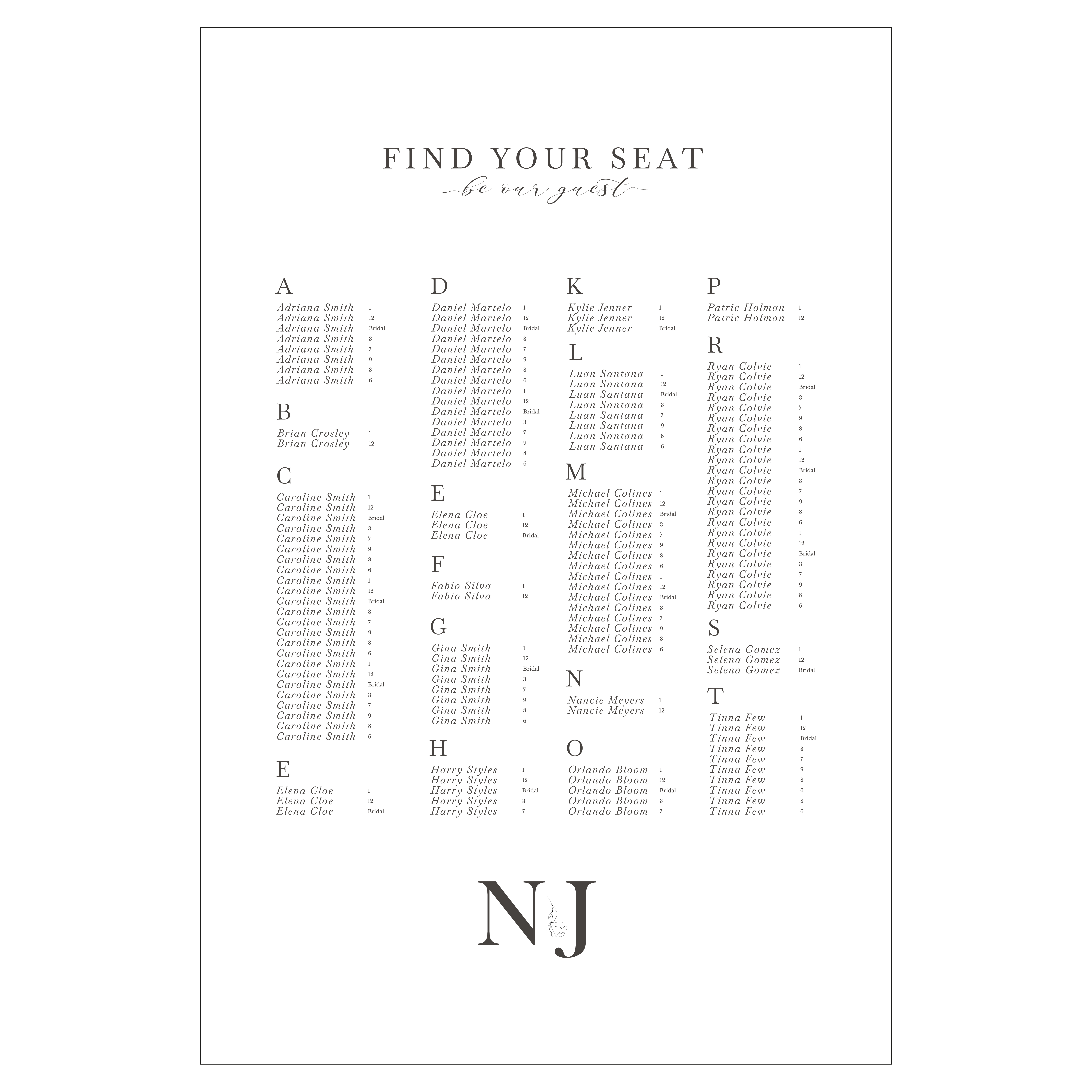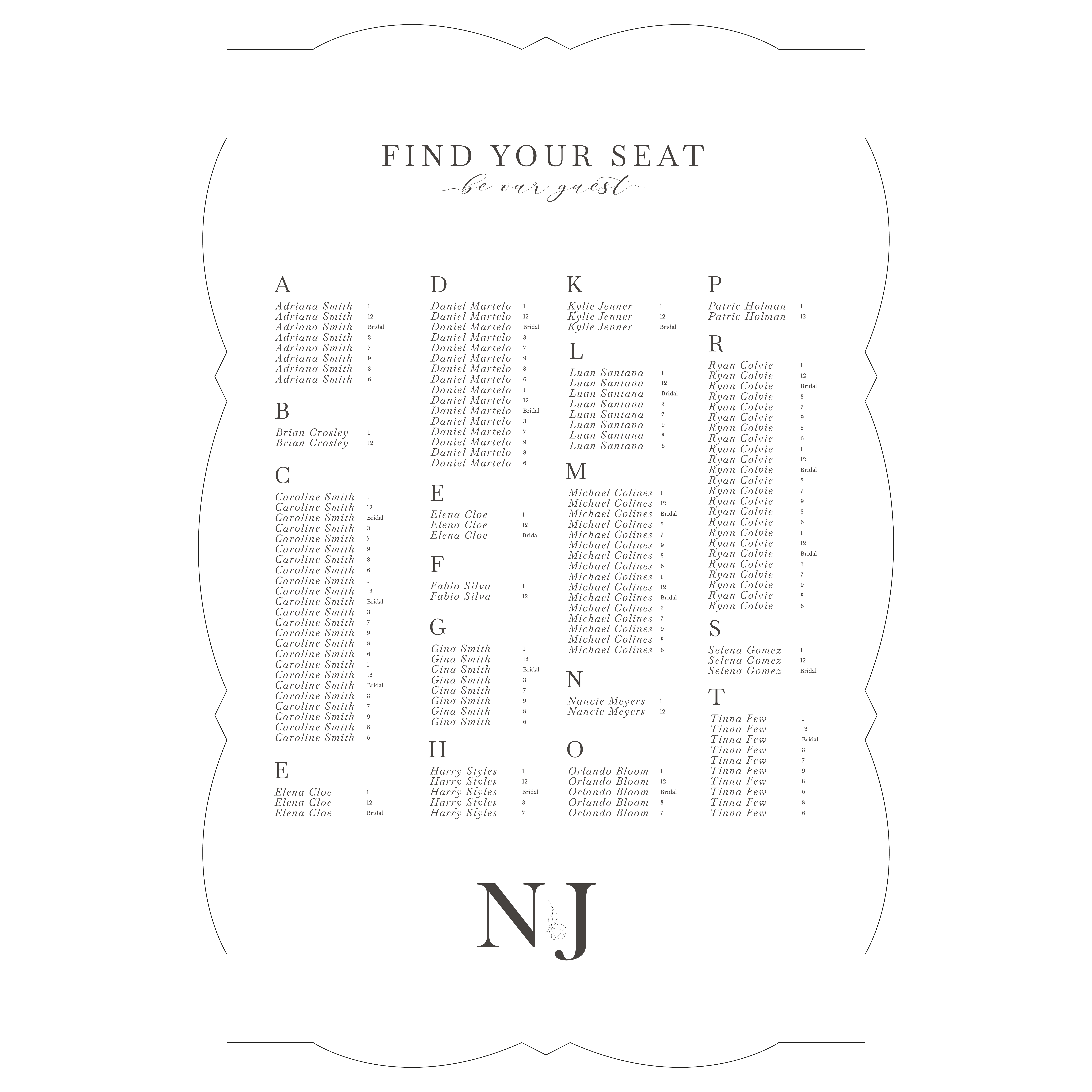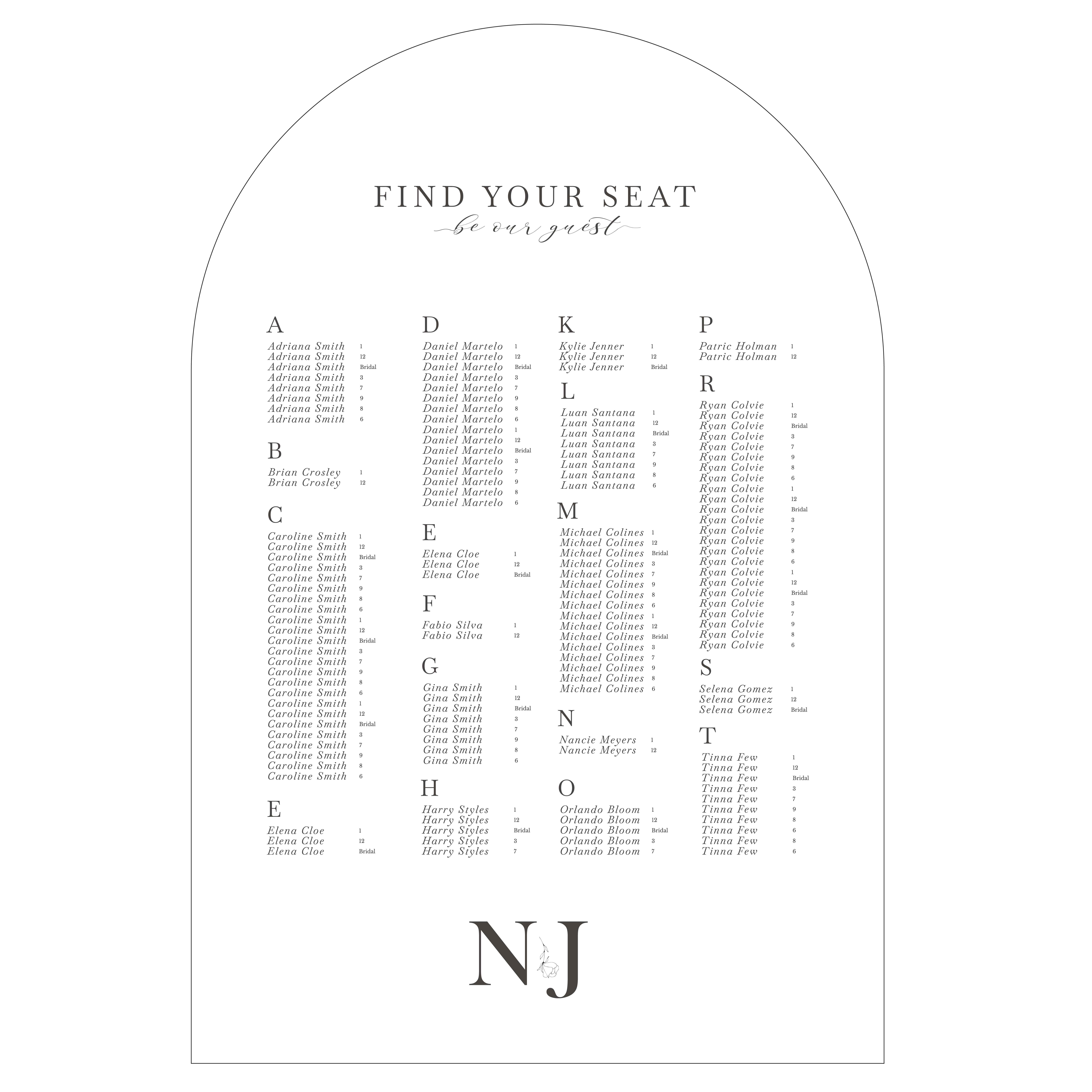 Elevate your wedding or special event with this sleek and stylish acrylic Seating Chart. Crafted from high-quality plexiglass, this piece features a clean, minimalist design with polished edges for a premium finish. The Seating Chart is laser-cut for precision and etched with UV printing for a vibrant, long-lasting display.